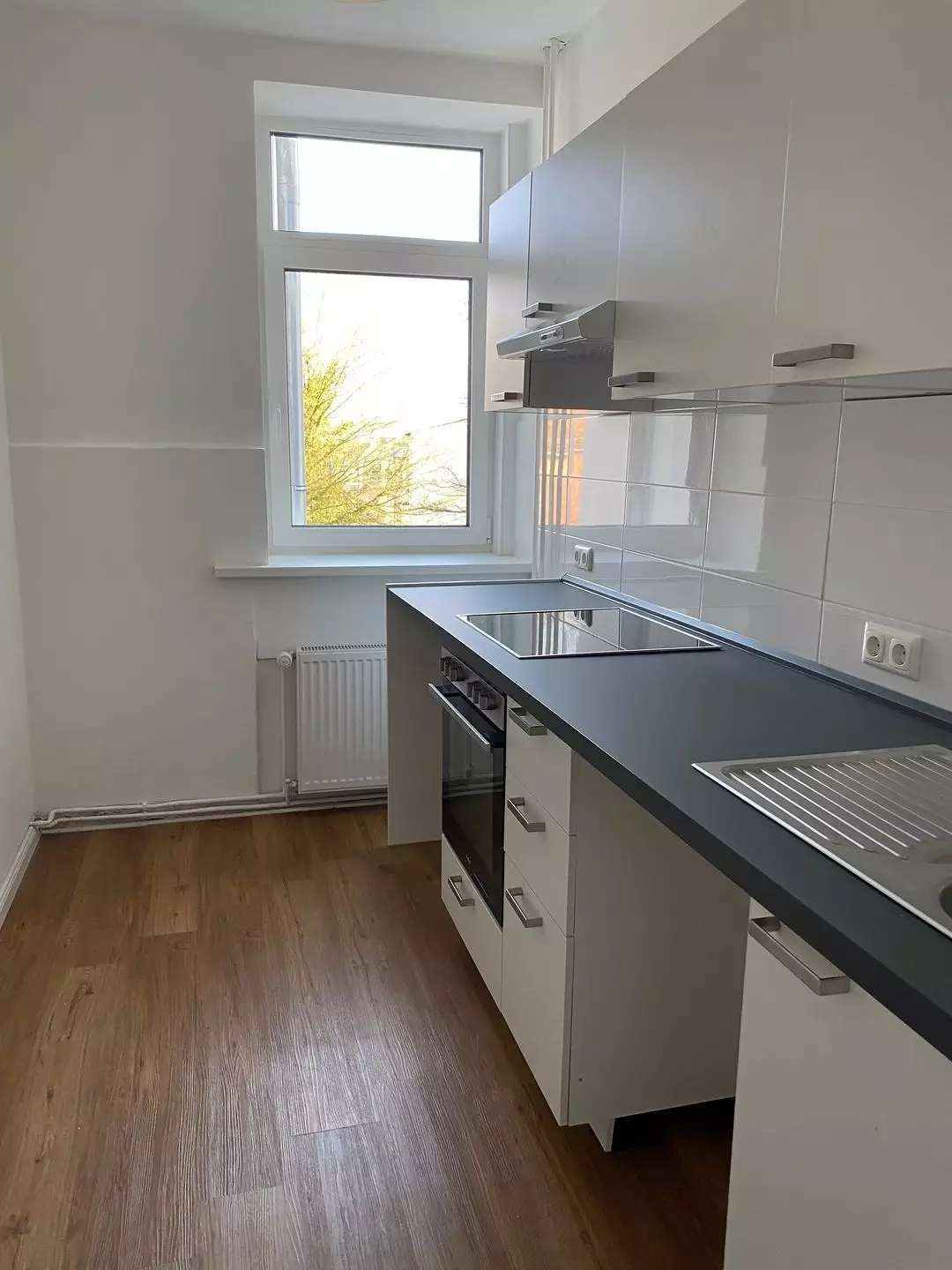 Wohnung Die Wohnung ist mit einer neu wertigen Einbauküche, einem Vollbad mit Fenster sowie neu aufgearbeiteten Holzdielenböden in Flur-, Wohn- und Schlafraum ausgestattet.